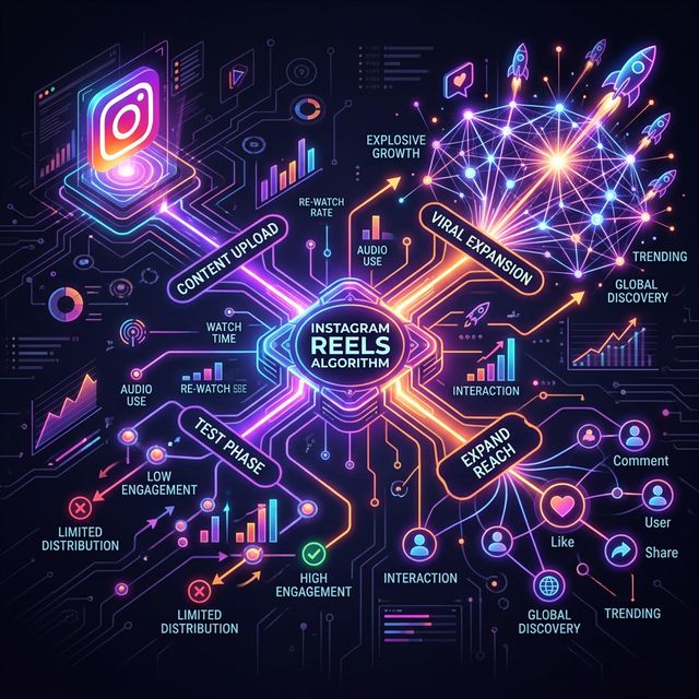 In 2026, the Instagram Reels algorithm subjects content to a gradual testing process. Learn the 0 to 100K views scenario.